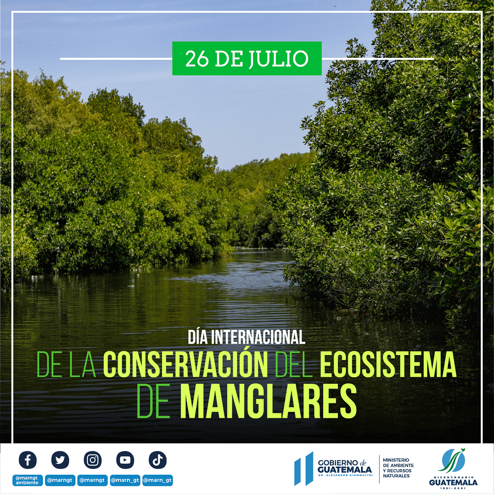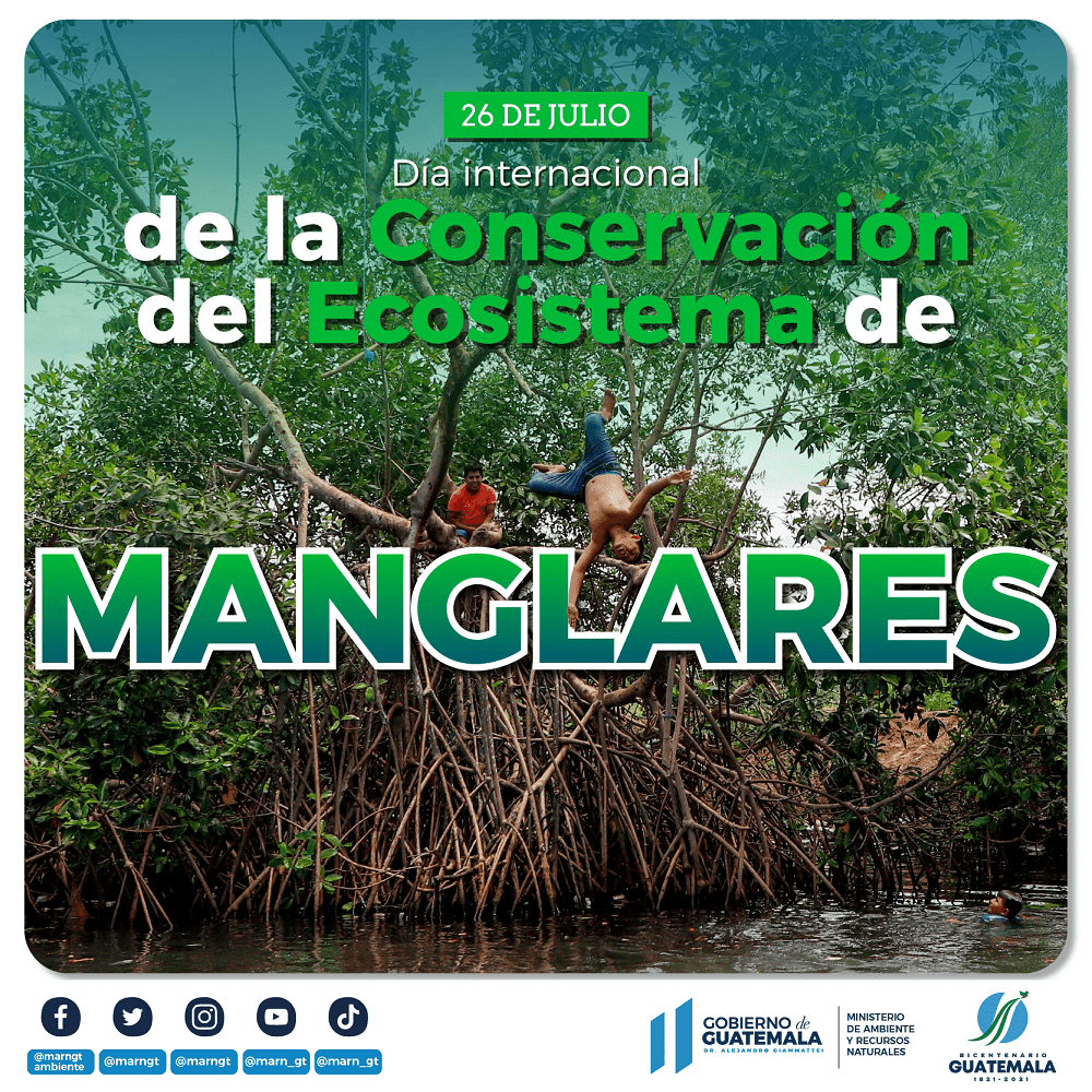 Cada 26 de julio se celebra el Día Internacional de la Defensa del Ecosistema Manglar. Guatemala es uno de los 18 países megadiversos del planeta, entre su amplia variedad de ecosistemas se encuentra el manglar. En el Ministerio de Ambiente y Recursos Naturales se trabajan proyectos y políticas enfocadas en la conservación y protección de este hábitat.