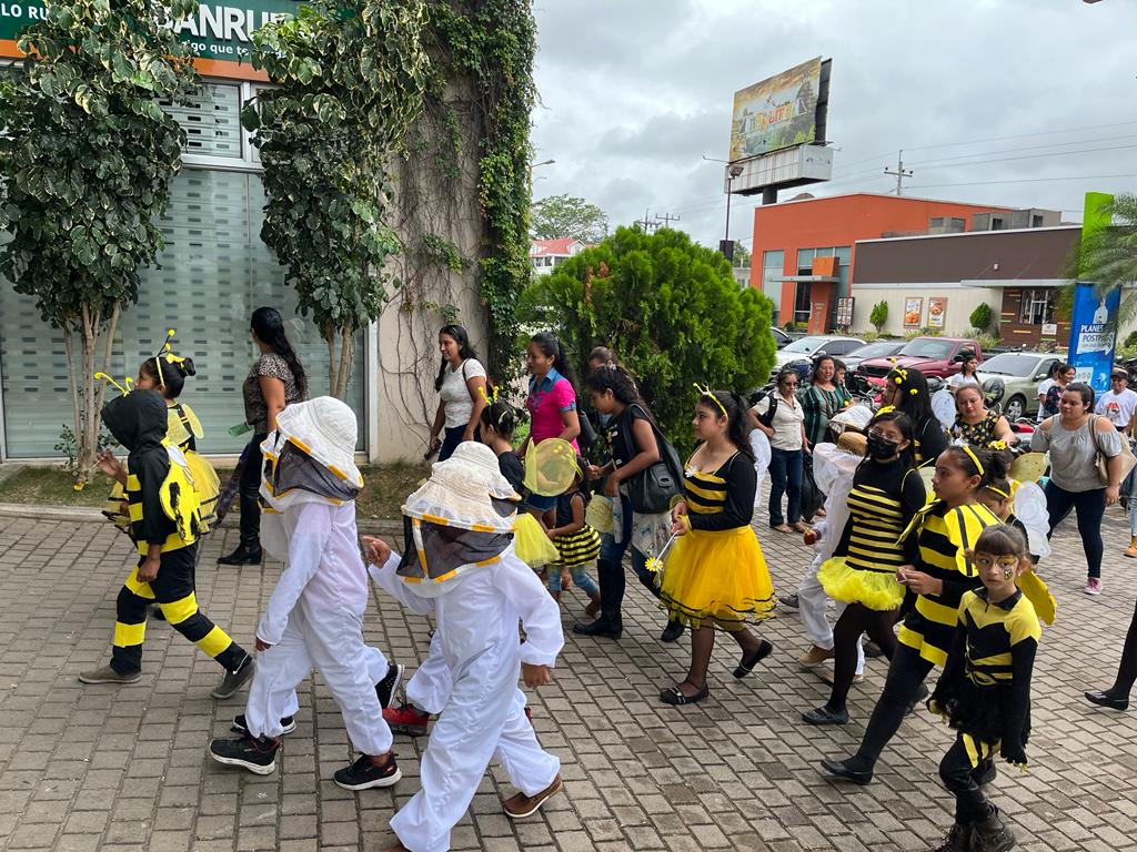 Este tipo de actividades forman parte de las acciones y estrategias que la cartera de Ambiente impulsa como parte de los programas de formación ambiental. Con alegría y entusiasmo los escolares junto a padres de familia llevaron a cabo una caminata, en la cual los niños iban disfrazados de abejas y apicultores.