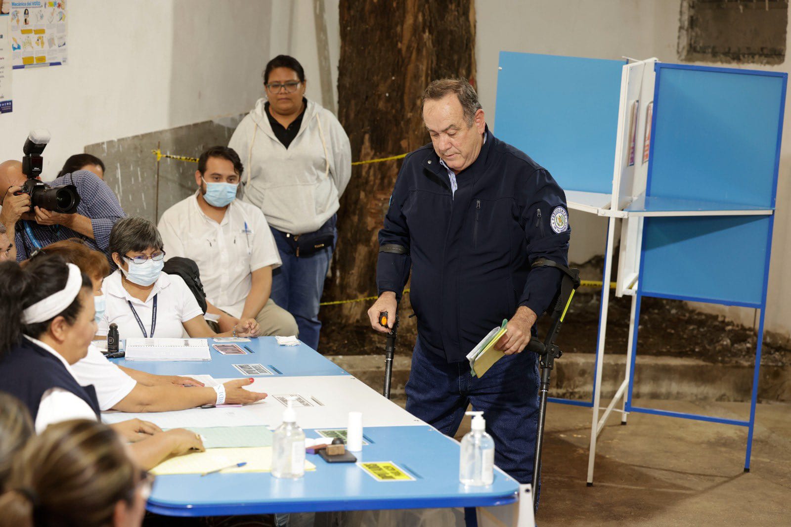 El presidente Giammattei acudió por la tarde al Centro de Votación instalado en el Colegio de Psicólogos –zona 9 de la capital-, donde se registró en la mesa 801, recibió las cinco papeletas para votar y depositó las mismas en la urna, bajo la supervisión de los ciudadanos responsables del recinto electoral.